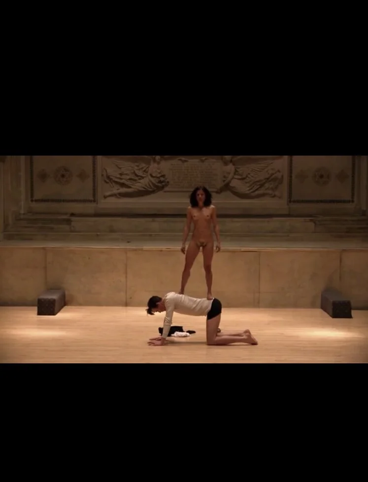From the archives of “The Gilded Kant” a brown female body with a gold cunt standing on a white man’s back…one of the images of this piece created in 2015. Creation and Performance by Elisa Osborne and a white male performer at Judson Church.